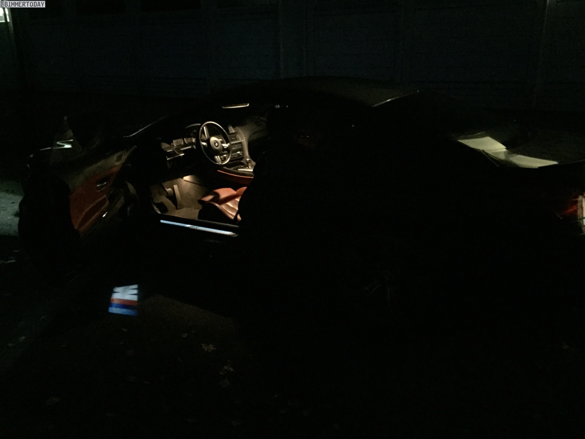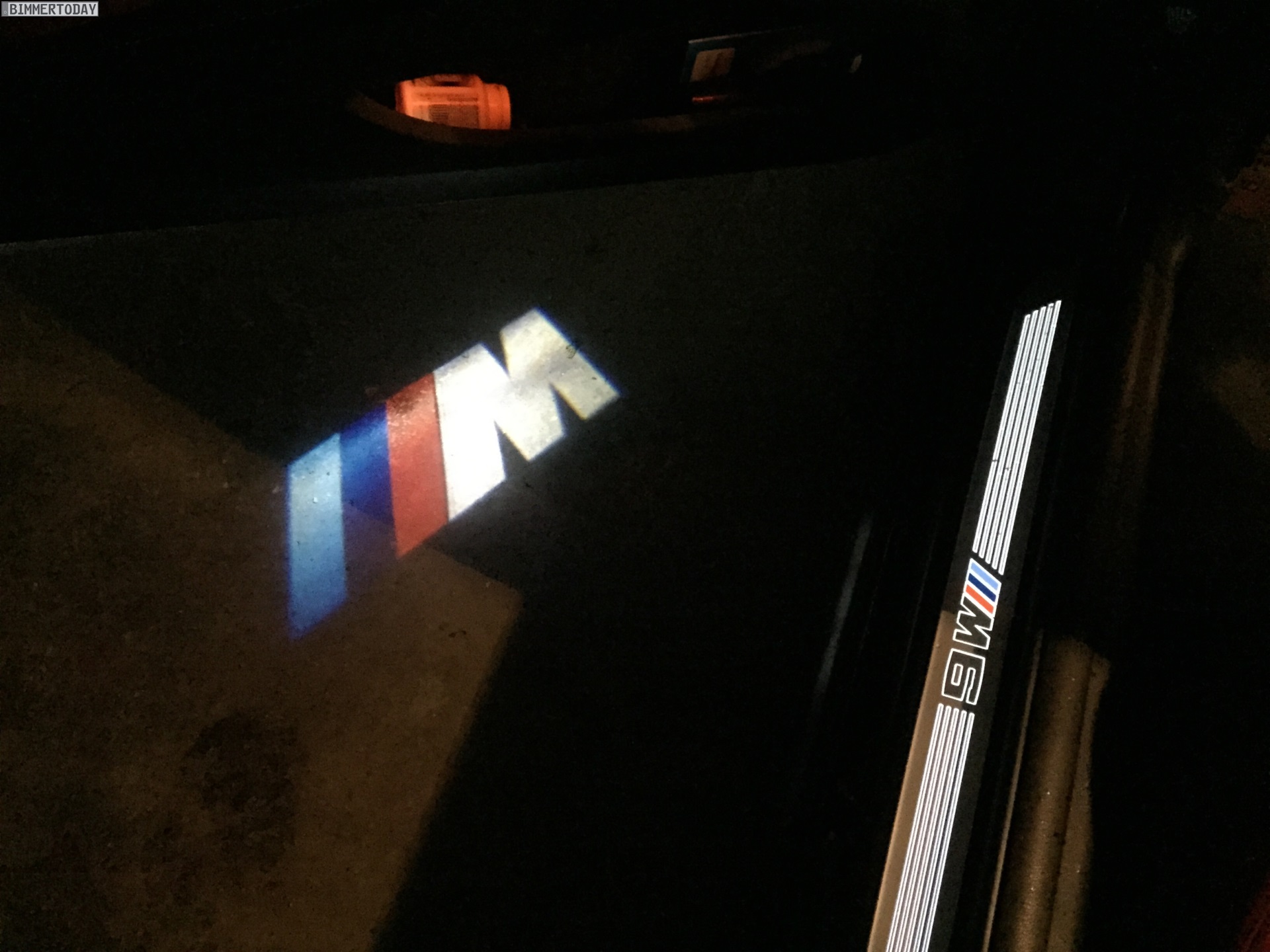 But it turns out that the projected image can be changed. A reader of Bimmertoday installed one of those LED projectors and managed to change the image to the ///M logo. The projector uses the standard door entry light which illuminates upon opening the door.