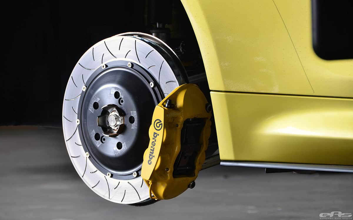 Next, the team installed a front/rear Brembo GT big brake kit for better stopping power and fade-free performance. A set of aftermarket wheels was next in line, the strong and lightweight 18″ Apex EC-7 wheels.