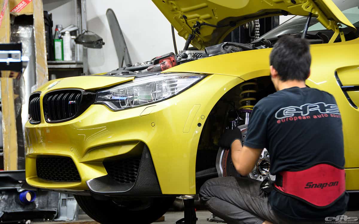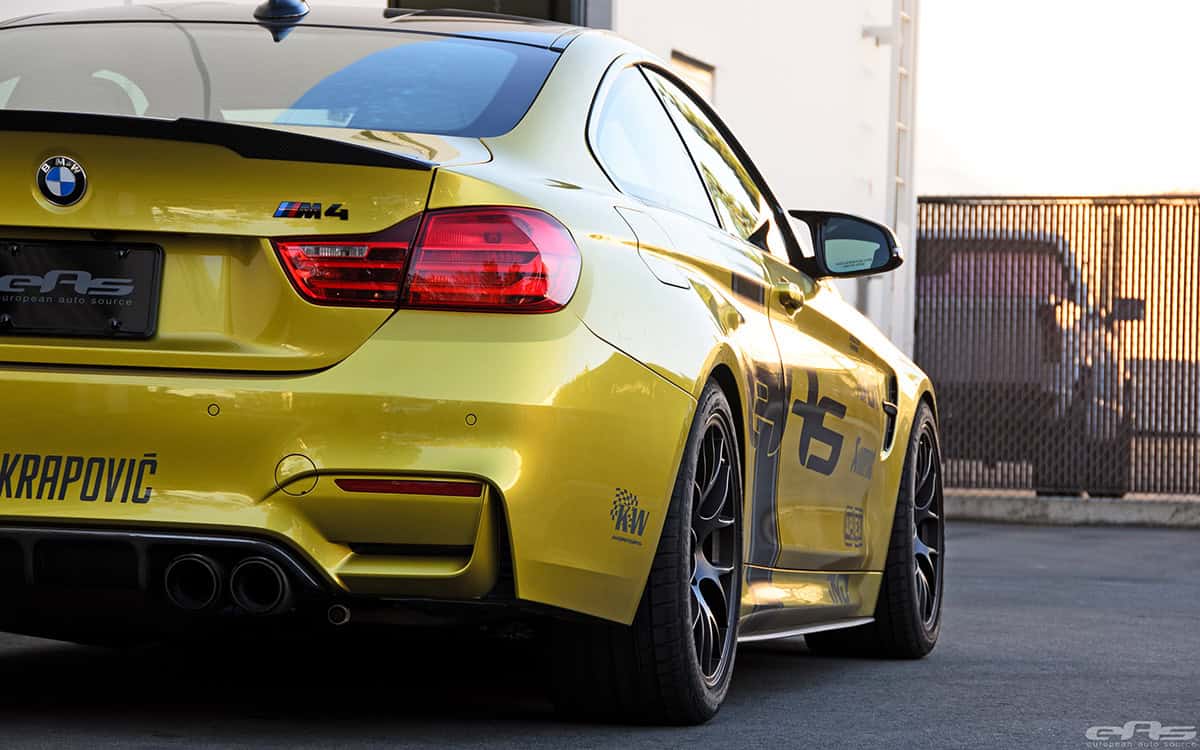 Each year, European Auto Source competes in the European Car Magazine Tuner GP with one of their project BMW cars. They have previously entered with a supercharged E92 M3 and a supercharged E86 Z4M, but this was the first year EAS showed up with a turbocharged car. They entered the contest with a beautiful Austin Yellow BMW F82 M4.