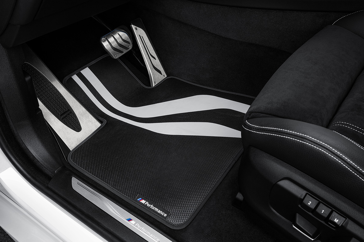 Another highlight in the new range of Accessories for the BMW X6 interior is the BMW M Performance steering wheel in Alcantara with attractive carbon trim. It is beautifully grippy, even in extreme driving situations, and remains equally pleasant to the touch in all temperatures. The red centre marker at the top imparts a genuine motor sport feeling. Likewise the BMW M Performance stainless steel pedal covers and the driver’s footrest, which provide a visually appealing and functional complement to the other M Performance Parts for the interior. The new M Performance key case continues the theme. With its sophisticated Alcantara/carbon material combination, M Light Blue accents and high-quality blue hex bolt, it blends in perfectly with the sporty and dynamic design of the new BMW M Performance Parts. The easy-care BMW M Performance floor mats, meanwhile, are a perfect fit and set the seal on the sporting looks of the interior. All four mats come with eye-catching M Performance lettering.