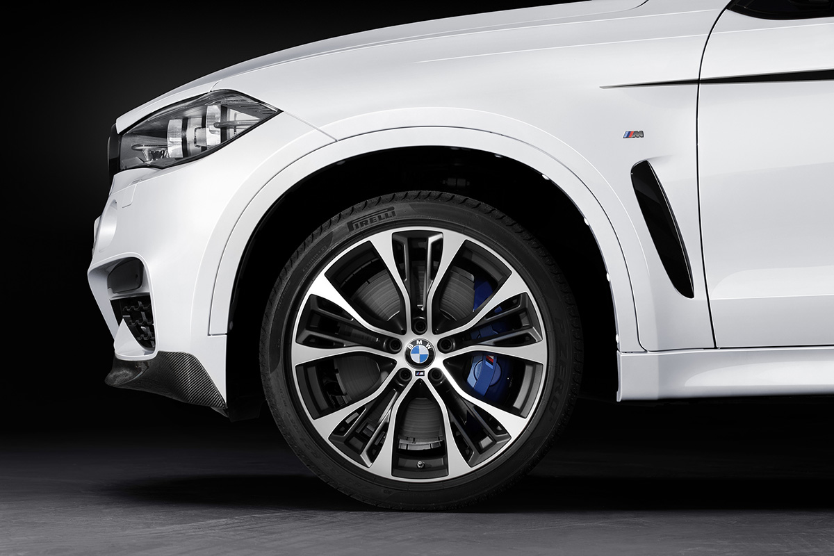 In keeping with the overtly sporty design of the BMW X6, the new range of BMW M Performance Parts also includes two performance-boosting Power Kits. The Power Kit for the BMW X6 xDrive30d (fuel consumption combined: 6.0 l/100 km [47.1 mpg imp]; CO2 emissions combined: 159–157 g/km)* ramps up the car’s output and torque from 190 kW (258 hp) and 560 Nm (413 lb-ft) to 204 kW (277 hp) and 585 Nm (431 lb-ft), and shaves 0.2 seconds off the 0 to 100 km/h (62 mph) time set by the standard model. The key modifications here include a new control unit with revised engine data and additional hardware components, such as an upgraded intercooler. The Power Kit also comes with larger 18-inch front brake discs, which deliver improved stopping power. The Power Kit for the BMW X6 xDrive35i (fuel consumption combined: 8.6–8.5 l/100 km [32.9–33.2 mpg imp]; CO2 emissions combined: 200–198 g/km)* raises output and torque from 225 kW (306 hp) and 400 Nm (295 lb-ft) to 240 kW (326 hp) and 450 Nm (332 lb-ft), improving 0 – 100 km/h (62 mph) acceleration by as much as 0.5 seconds over the standard model. The increase in power is accompanied by a sportier accelerator set-up delivering faster responses, along with an optimised engine and exhaust soundtrack. Remarkably, both Power Kits give the X6 the same low fuel consumption and emissions in the ECE driving cycle as on the standard-spec version, despite the increases in performance.