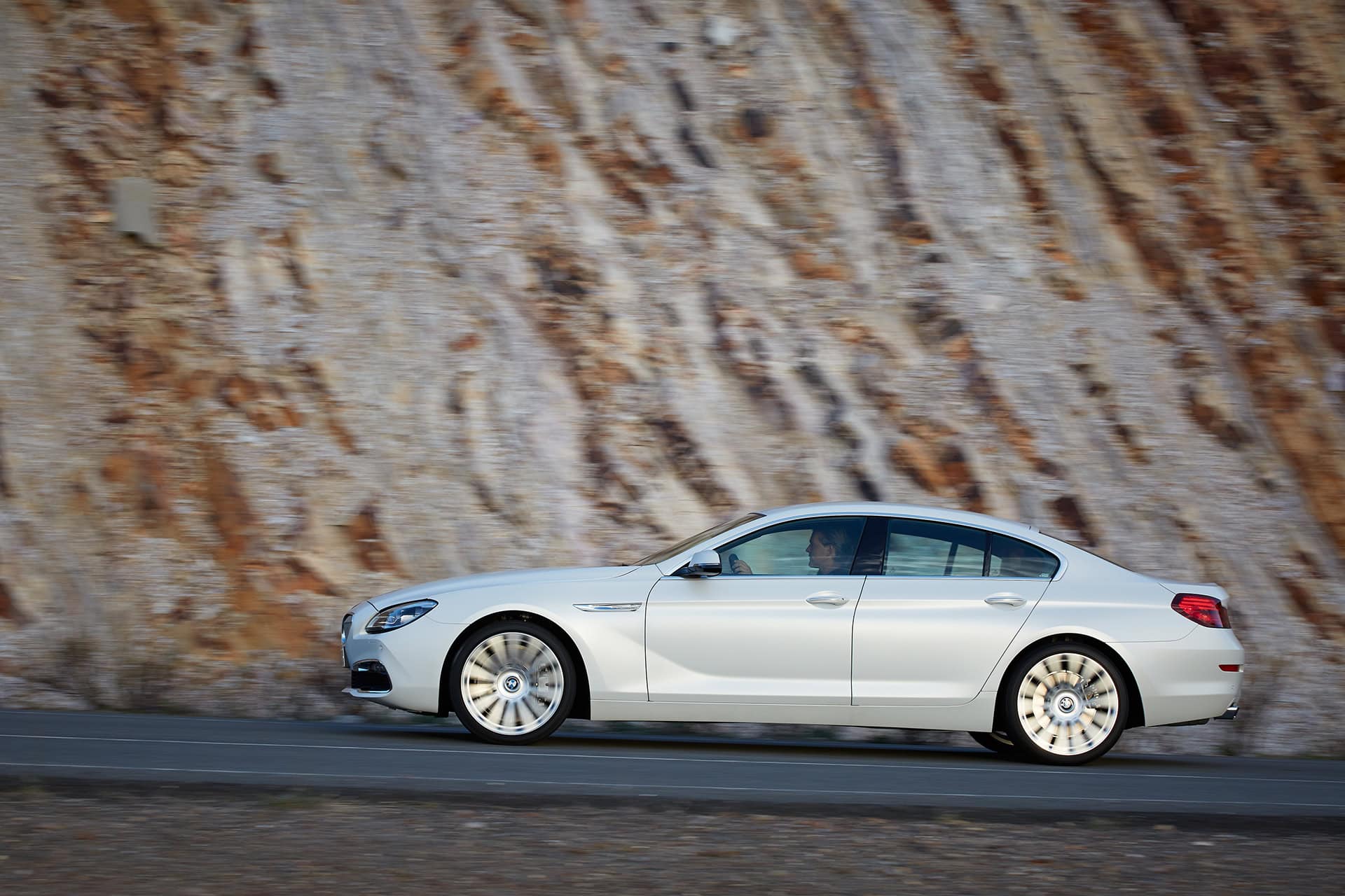 Profile: aerodynamically optimized exterior mirrors, newly designed model badge for the BMW 6 Series Gran Coupe.