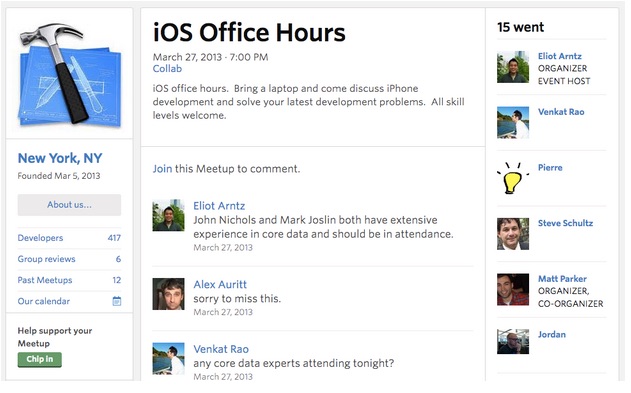 After finishing the consulting work for their dev shop in the day, they put together an effort designed initially just to help them with hiring. They put up a monthly Meetup called “iOS Office Hours” in New York City where they’d meet anyone to walk through specific problems they were facing trying to learn iPhone programming.