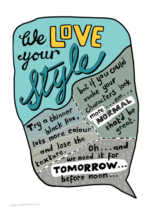 All images are from the Bit Rebel post 72 Posters of Ridiculous Design Feedback from Clients, images made by designers Mark Shanley and Paddy Treacy from actual feedback they have received.