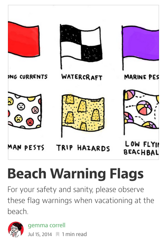 Some of the popular content on Medium amounts to little more than a cartoon or series of images. This visual content is striking in its place beside written content. It looks great beside articles of 5 to 7 minutes, while it stands at 2.