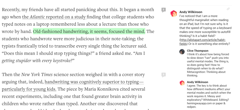 Comment – Medium’s unique approach to comments allows you to leave notes in the margins of the story at the exact location you choose.