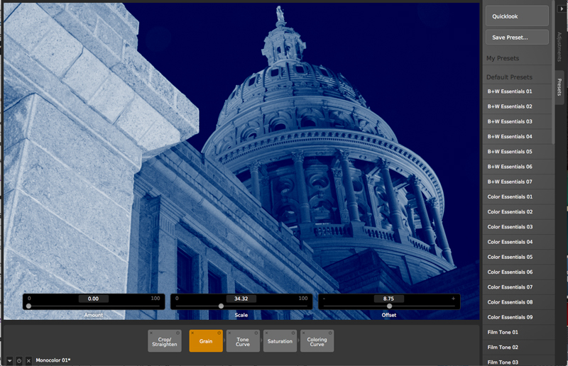 The latest version offers more than 170 new film presets, and all of those from the previous version have been re-worked or fine-tuned for better accuracy for newer cameras. This package also includes an Essentials Toolkit for quick control over contrast, fade, grain, vignette and slide frame effects. There are so many different films in this collection, it almost made my heart stop.