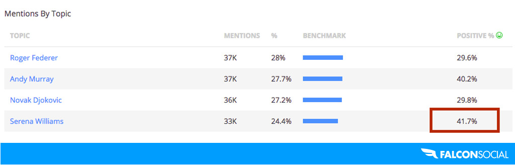 It’s also really working. She has scored the highest percentage of positive sentiment of all the players in the report: