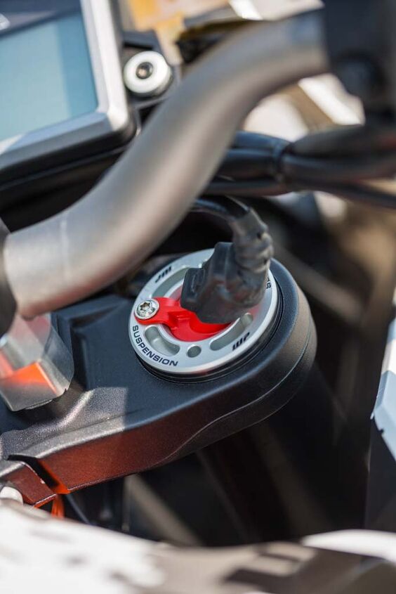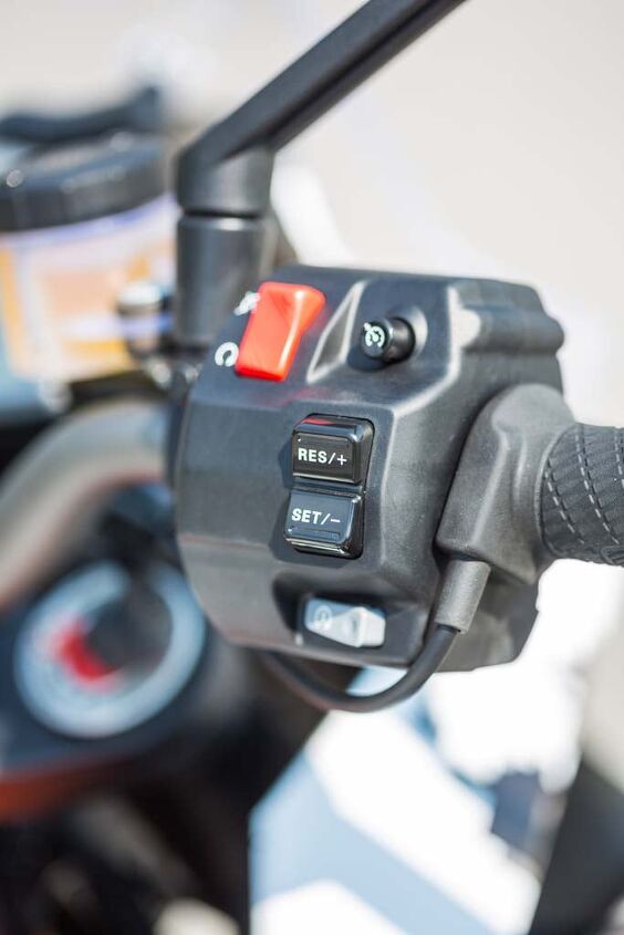 We found little to complain about re: the SDR’s bodice-ripping 150-plus hp, 90-lb-ft-plus 1301cc V-Twin, but the new GT will be benefitting from an updated version with new heads said to improve combustion efficiency, and EFI retuned for enhanced “fast public tourism,” with three riding modes, Sport, Street and Rain. Motorcycle Stability Control (MSC) will integrate Traction Control (four options) with four-option ABS (Street, Sport, Rain, Supermoto). Cruise control is standard equipment.