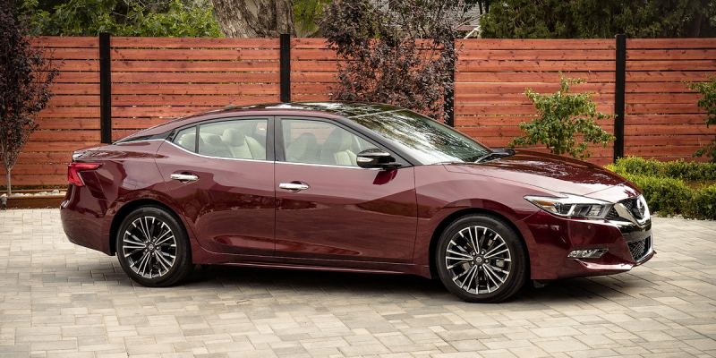 CG Says: After a brief hiatus for the 2015 model year, Nissan’s “4-door sports car” midsize sedan is redesigned from the ground up for 2016. The new Nissan Maxima is 1.3 inches lower and 2.2 inches longer than the model it replaces. It gets dramatic new styling, a substantially revised 3.5-liter V6 that puts out 300 horsepower, and a host of new safety and technology features. As with the previous-generation Maxima, a continuously variable transmission (CVT) is the lone gearbox available, but it’s a performance-oriented “XTronic” unit with Nissan’s D-Step shifting logic for a more-responsive feel. Among the 2016 Maxima’s new features are remote engine start, a Drive Mode Selector that offers Normal and Sport settings, and a standard navigation system. Available safety features include Predictive Forward Collision Warning, Forward Emergency Braking, Rear Cross Traffic Alert, Blind Spot Warning, and Driver Attention Alert. The Maxima’s aggressive styling, 300-hp V6, and various tech features help it stand out from all the Altimas, Honda Accords, and Toyota Camrys. However, it’s not as spacious inside as the top midsize sedans, and it’s not as prestigious or athletic as luxury-brand sport sedans. As such, the 2016 Nissan Maxima is a fine choice for buyers who are looking for a bit more spice in their mainstream midsize sedan, but don’t want to step up to the higher costs of a luxury-brand sport sedan.