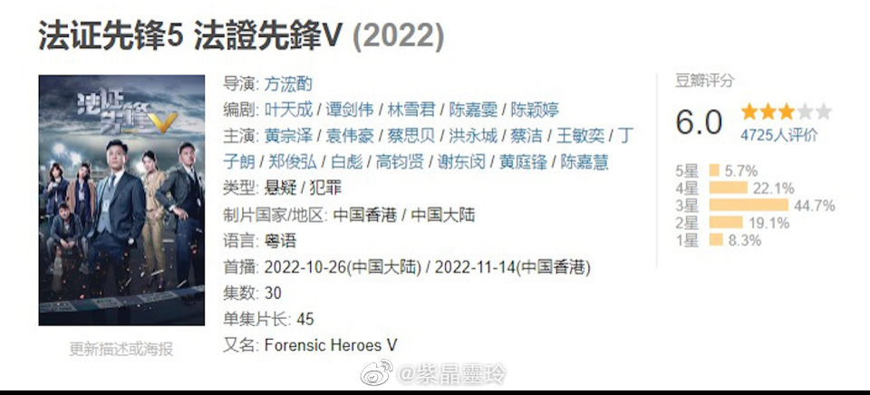 【01娛樂】法證先鋒V|黃宗澤被指戲份少似客串 王敏奕感情戲過多成愛情劇?由黃宗澤(Bosco)、袁偉豪、蔡思貝、洪永城、蔡潔、 王敏奕等主演的無綫劇集《法證先鋒V》於優酷率先首播,日前一班主創於微博直播,同網友互動,大談拍攝趣事。幾位主創於微博直播,同網友互動。(微博圖片)(以下含輕微劇透)在近日播出的劇情中,飾演法醫的蔡潔被兇手脫光衣服,綁在解剖台上,兇手用手術刀一刀一刀劃傷她的四肢,隔著熒幕都感覺到她的無助。事後,不少網友都湧入蔡潔微博留言,表示「好痛」,而她在直播時回應道:「實際上的感覺是好冷,因為那個時候也是真的沒有穿衣服,躺在解剖台上面,又是冬天,就我們解剖的每一具屍體都很冷,印象很深刻。」而蔡思貝就分享了與袁偉豪拍戲的「恐怖」經歷:「有一場戲我們在墓地去野餐,就是跟他(指著袁偉豪)一起去查案的一場戲,我們在墓地野餐,然後看日出。」這時洪永城忍不住笑言:「太浪漫了吧。」不過蔡思貝直言:「浪漫也是恐怖的,因為是墓地嘛,真的(墓地),有一點點害怕的,就是一邊吃,那一轉頭,哇!那個東西就吃完了。」蔡思貝談於墓地拍戲感覺恐怖。(視頻截圖)《法證先鋒V》目前已播出過半,在豆瓣評分暫為6,網友對此褒貶不一。有網友表示,作為男主角的黃宗澤戲份少到似客串,且節奏愈來愈慢,比起一、二、三集來講,依然少了很多斷案推理過程,但較第四集有進步;其次,扮演女警霍寶英的王敏奕作為女配角,戲份反而很多,尤其是與黃宗澤的感情戲,被詬病「破案5分鐘,戀愛40分鐘」,揶揄劇名應改為《小女警求愛記》等。黃宗澤是劇集賣點之一,目前豆瓣評分6。(豆瓣截圖)法证先锋5黄宗泽